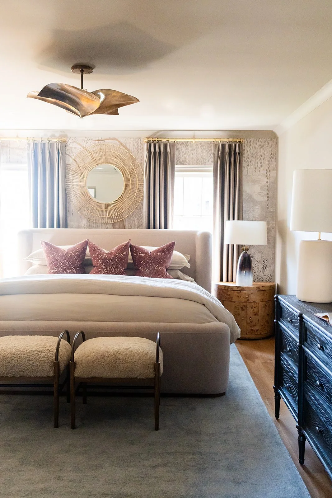 The primary bedroom was designed to feel effortless. A warm, neutral retreat that fits the homeowners perfectly. Two guest bedrooms were layered to feel intentional, and ready for long stays.